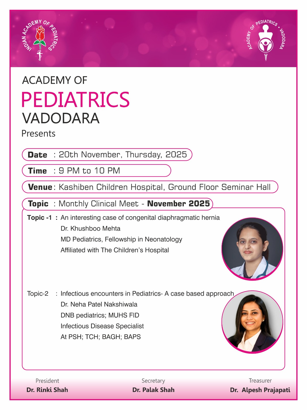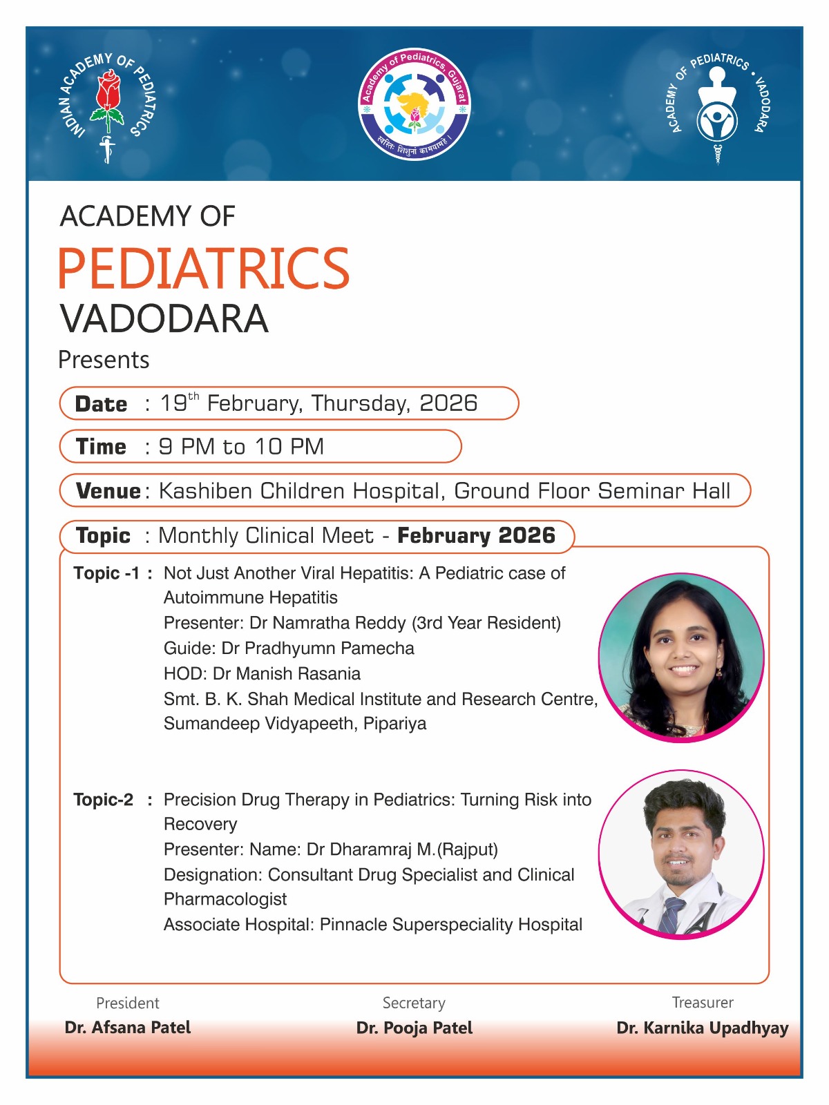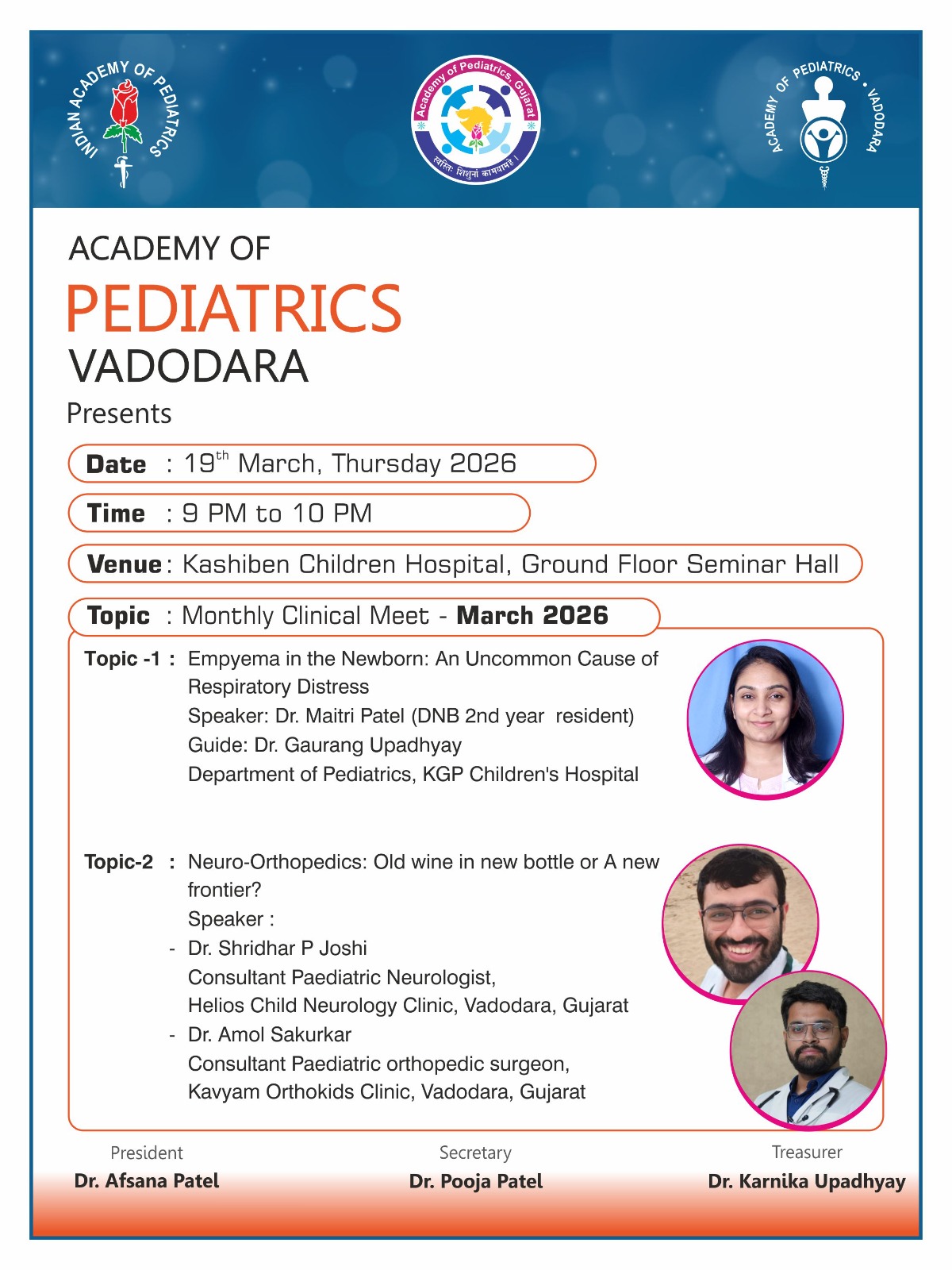 - Seminar Hall, Dept of Pediatrics, SSG Hospital, Vadodara.